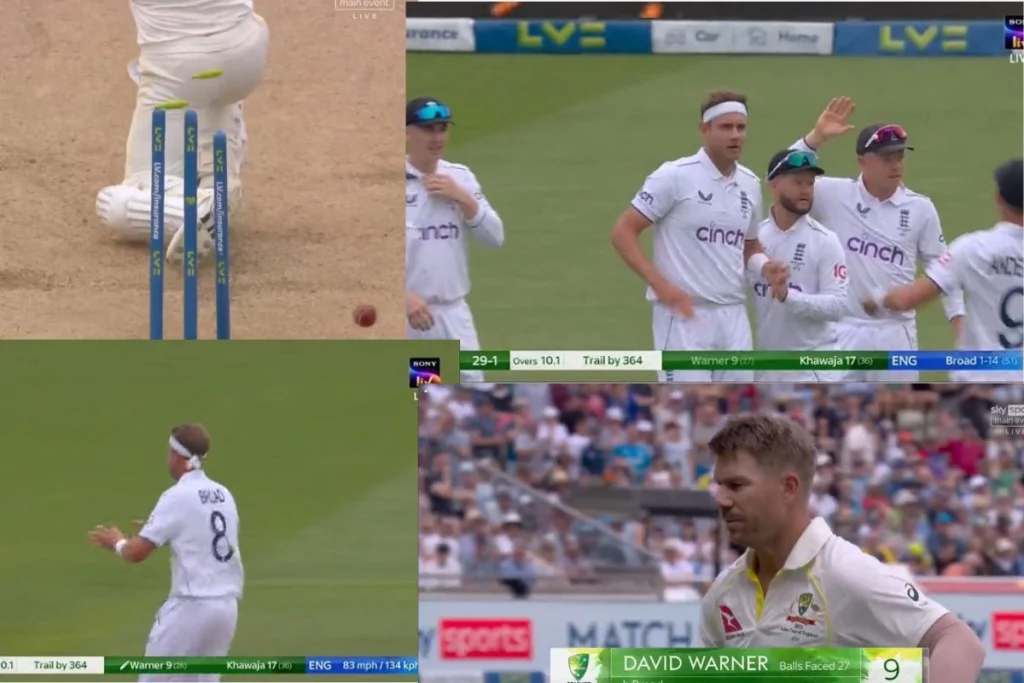 दरअसल, पारी का 11वां ओवर चल रहा था। इस दौरान गेंद की कामना तेज गेंदबाज स्टुअर्ट ब्रॉड के हाथ में थी। इस दौरान स्ट्राइकर एंड पर धाकड़ बल्लेबाज डेविड वॉर्नर बल्लेबाजी कर रहे थे। वहीं उनके ओवर की दूसरी ही गेंद पर वॉर्नर चकमा खा गए और क्लीन बोल्ड़ होकर पवेलियन लौटे। उनका बल्ला पहले गेंद पर लगा फिर गिल्लियां उखड़ गई। विकेट चटकाने के बाद स्टुअर्ट ब्रॉड मैदान का चक्कर लगाते हुए कैमरे में कैद हुए जिसका अंदाजा आप वायरल वीडियो को देख कर लगा सकते है।