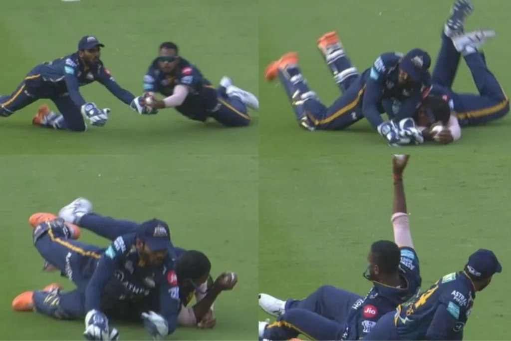 दरअसल पारी का तीसरा ओवर गुजरात टाइटंस के सबसे सफल गेंदबाज मोहम्मद शमी कर रहे थे। मोहम्मद शमी ने ओवर की तीसरी गेंद शॉट की, जिसे सलामी बल्लेबाज रहमानुल्लाह गुरबाज ने पुल करने की कोशिश की, लेकिन गेंद रहमानुल्लाह गुरबाज की बल्ले पर ठीक से नहीं आई और गेंद विकेटकीपर की ओर चली गई, जिसे पकड़ने के लिए यश दयाल दौड़े, लेकिन रास्ते में विकेटकीपर साहा भी बीच में आ गए, लेकिन यश दयाल ने गेंद पर निगाहें बनाई रखी और शानदार कैच पकड़ कर सलामी बल्लेबाज रहमानुल्लाह गुरबाज को पवेलियन भेजा। यहां देखें यश दयाल का शानदार कैच