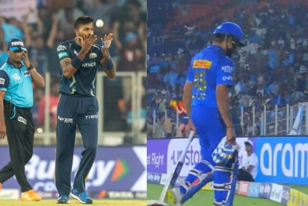 GT VS MI IPL 2023: आईपीएल 2023 35वां मुकाबला गुजरात टाइटंस और मुंबई इंडियंस (GT VS MI IPL 2023) के बीच खेला जा रहा है। दोनों टीमों के बीच यह मैच अहमदाबाद के नरेंद्र मोदी स्टेडियम में खेला जा रहा है। इस मैच मुंबई इंडियन के कप्तान रोहित शर्मा और गुजरात टाइटंस के कप्तान हार्दिक पांड्या ने काफी आसानी से आउट कर दिया। रोहित शर्मा के आउट होने का वीडियो सोशल मीडिया पर जमकर वायरल हो रहा है।