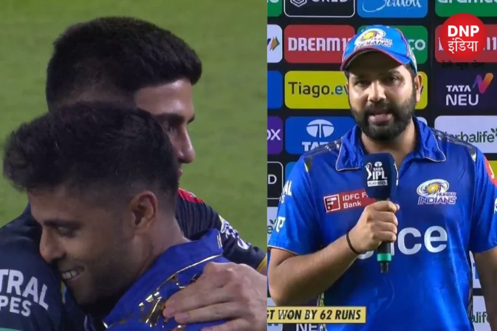 पहली पारी के दौरान ईशान किशन की आंख पर गंभीर चोट आई थी। जिसके बाद उनके स्थान पर कंकशन के रूप में विष्णु विनोद बल्लेबाजी करने मैदान पर आए थे। लेकिन, वो भी कुछ खास कमाल नहीं कर सके। वहीं ओपनिंग में रोहित के साथ नेहाल बढ़ेरा आए थे। वो भी 4 रन बनाकर सस्ते में आउट होकर पवेलियन लौटे। इसके बाद हिटमैन भी 8 रन पर ही ढेर हो गए। वहीं ग्रीन भी चोटिल हो गए थे। फिर उन्हें रिटायर्ड हर्ट होकर मैदान से बाहर जाना पड़ा था। हालांकि, विकेट गिरने के कुछ देर बाद ही वो वापसी बल्लेबाजी करने मैदान पर आ गए थे। वही सूर्या और ग्रीन ने मिलकर टीम के लिए शानदार साझेदारी की थी दोनों ने मिलकर टीम को जीत दिलाने की हर भरकस कोशिश की। इसी पर रोहित शर्मा ने आगे कहा कि,