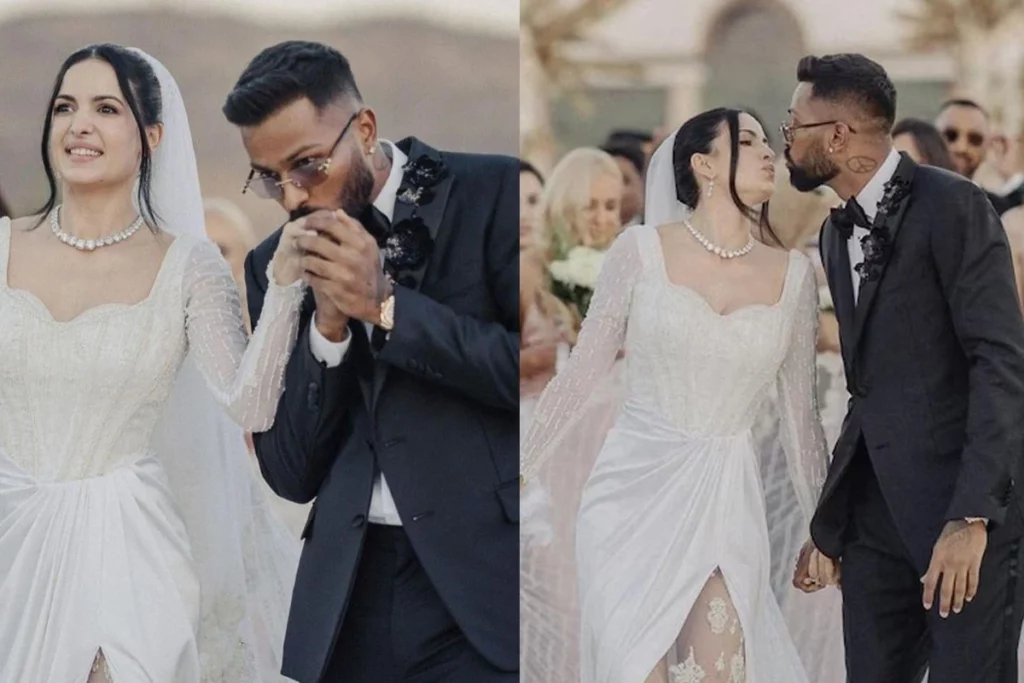 अपनी शादी में नताशा व्हाइट गाउन में किसी खूबसूरत अप्सरा से कम नहीं नजर आ रही थी वहीं हार्दिक ब्लैक सूट में हैंडसम नजर आए। दोनों साथ में अपनी कई तस्वीरें भी शेयर की जिसमें उनकी केमेस्ट्री लाजवाब है। दोनों की शादी चर्चा में है। गौरतलब है कि दोनों ने कोरोनाकाल यानी 2020 में सगाई की और फिर कोर्ट मैरिज कर ली थी। उस दौरान हार्दिक ने क्रूज पर घुटनों पर बैठकर नताशा को प्रपोज किया था। आज कपल दो साल के एक बेटे के पेरेंट्स भी हैं। ऐसे में इनकी शादी लाइमलाइट में है।