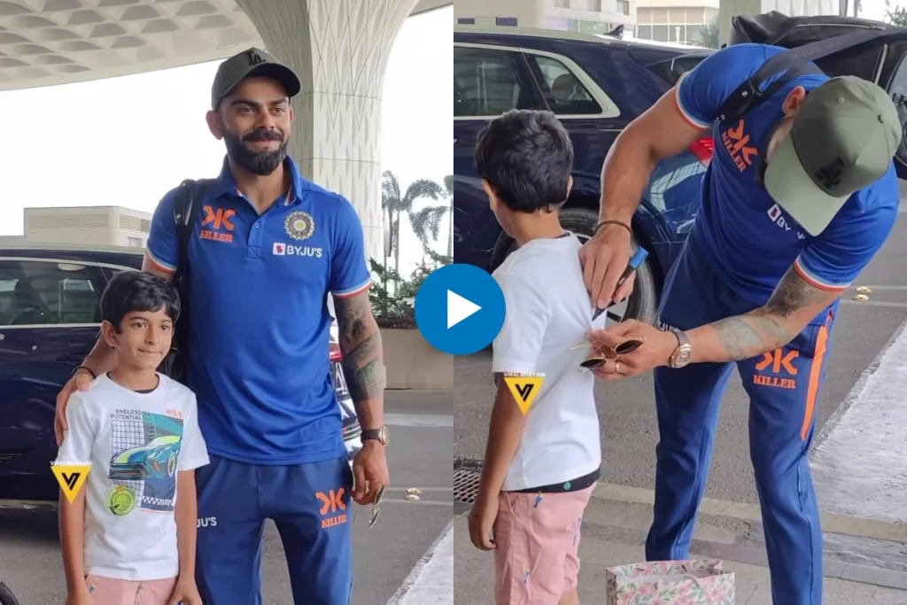 मुंबई एयरपोर्ट पर अपने नन्हें फैन से मिले कोहली