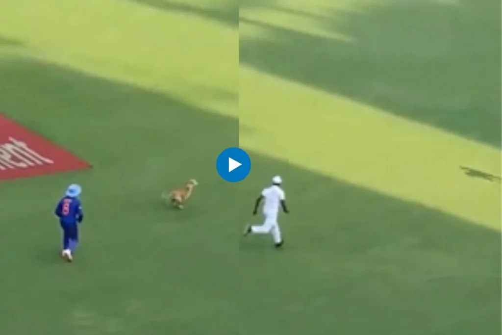 भारत और ऑस्ट्रेलिया के बीच खेले जा रहे तीसरे वनडे मैच में जब ऑस्ट्रेलिया टीम बल्लेबाजी कर रही थी। उस दौरान मैदान पर एक कुत्ता घुस जाता है और मैदान पर चक्कर लगाने लगता है। जिसके पीछे मैदानकर्मी तेजी से पीछा करते हैं लेकिन पकड़ नहीं पाते हैं। इसके बाद रविंद्र जडेजा ने भी कुत्ते को पकड़ने की कोशिश की लेकिन वह भी असफल रह जाते हैं। हालांकि, इसके बाद कुत्ते को बड़ी मस्कत के बाद पकड़ा जाता है और मैच शुरू किया जाता है।