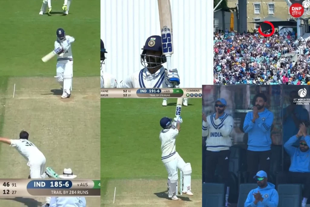 दरअसल, वायरल वीडियो में तेज गेंदबाज पैट कमिंस गेंदबाजी कर रहे है। वहीं स्ट्राइक पर इस दौरान धुरंधर बल्लेबाज अजिंक्य रहाणे बल्लेबाजी कर रहे है। वह अपनी धाकड़ बल्लेबाजी से कंगारू गेंदबाजों के होश उड़ा रहे है। इसी बीच ओवर की आखिरी गेंद पर उन्होेंने छक्का जड़कर अपना अर्धशतक पूरा किया। इस अर्धशतक के साथ ही कंगारू टीम में मातम पसर गया। वहीं भारतीय ड्रेसिंग रूम में खुशी की लहर दौड़ पड़ी। वहीं रहाणे ने अपना बल्ला हवा में लहरा कर फैंस को इस फिफ्टी के लिए धन्यवाद किया। वहीं कप्तान समेत पूरी टीम इंडिया ने ताली बजाकर उनका हौंसला अफजाई करते हुए नजर आई।