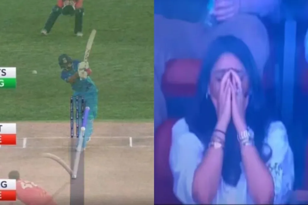 पहले बल्लेबाजी करते हुए भारत की शुरआत धीमी रही। लेकिन भारत के कप्तान रोहित शर्मा ने कप्तानी पारी खेलते हुए 101 गेंद में 87 रनों की शानदार पारी खेली। मैच में एक बार रोहित बाल-बाल बचे। जब मैच में फील्ड अंपायर में उन्हें आउट दिया तब रोहित ने डीआरएस लेकर खुदको बचाया, तब स्टेडियम में बैठी रोहित की पत्नी रितिका सजदेह ने ऐसा रिएक्शन दिया जो सोशल मीडिया पर खूब वायरल हो रहा है।