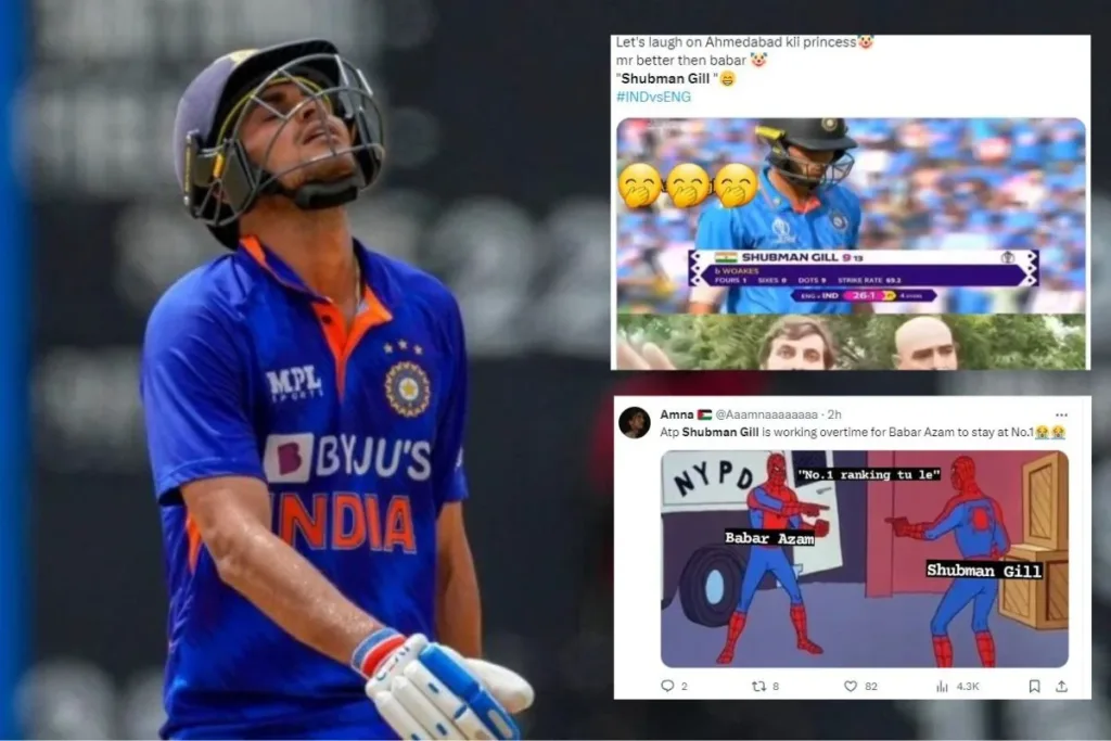 इंग्लैंड के ख़िलाफ़ 9 रन पर बोल्ड होने वाले शुभमन गिल को फैन्स सोशल मीडिया पर खूब ट्रोल कर रहे हैं। गिल आईसीसी ओडीआई रैंकिंग में दूसरे इस्थान पर हैं। वहीं पाकिस्तान एक कप्तान बाबर आज़म पहले स्थान पर हैं। ओडीआई में रैंकिंग अच्छी होने के बाद भी दोनों ही बल्लेबाज़ों का बल्ला अभी तक वर्ल्ड कप में नहीं चला है। फैन्स ने गिल से उम्मीदें लगाई, लेकिन उन्होंने फैन्स को निराश ही किया है। इतना ही नहीं फैन्स ने ये तक कह दिया कि अगर शुभमन की जगह शिखर धवन होते तो ज़्यादा अच्छा होता।