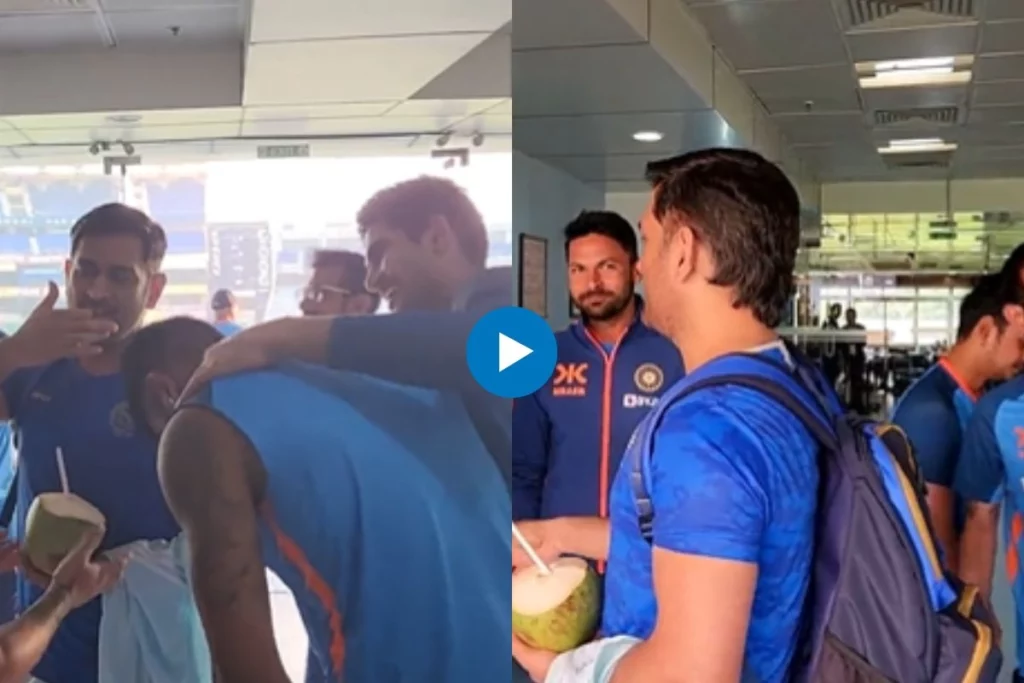 टीम इंडिया ने एकदिवसीय सीरीज को 3-0 से अपने नाम की और टी20I सीरीज के लिए टीम इंडिया की कप्तानी भारतीय ऑलराउंडर हार्दिक पांड्या करेंगे। लेकिन मैच से कुछ घंटे पहले भारतीय क्रिकेट कॉउंसिल (BCCI) ने वीडियो शेयर किया जिसमें पूर्व कप्तान महेंद्र सिंह धोनी जिनका रांची में ही घर है वह टीम इंडिया के खिलाड़ियों से मिलने पहुंचे और उन्होंने इस दौरान कप्तान हार्दिक पांड्या, ईशान किशन, शुभमन गिल, वॉशिंगटन सुंदर औऱ सूर्यकुमार यादव से बातचीत करते दिखे। हालांकि, वीडियो में कोई आवाज नहीं थी लेकिन देखकर ऐसा लग रहा था कि धोनी ने टीम इंडिया को पहले मैच के लिए जीत का गुरु मंत्र दे दिया है।