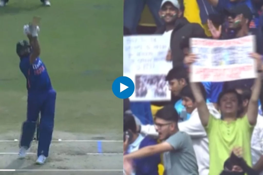 IND vs NZ: टीम इंडिया और न्यूजीलैंड (IND vs NZ) के बीच तीन मैचों की एकदिवसीय सीरीज का आखिरी मुकाबला इंदौर के होलकर मैदान पर खेला जा रहा है। आज के मैच में न्यूजीलैंड टीम के कप्तान टॉम लाथम ने टॉस जीतकर पहले गेंदबाजी करने का फैसला किया। सीरीज को पहले ही अपने नाम कर चुकी टीम इंडिया के सलामी बल्लेबाज रोहित शर्मा (Rohit Sharma) और शुबमन गिल ने टीम को शानदार शुरुआत दिलाई। लेकिन इस दौरान कप्तान रोहित शर्मा ने एक कमाल छक्का लगाया जिसका वीडियो सोशल मीडिया पर वायरल हो रहा है।