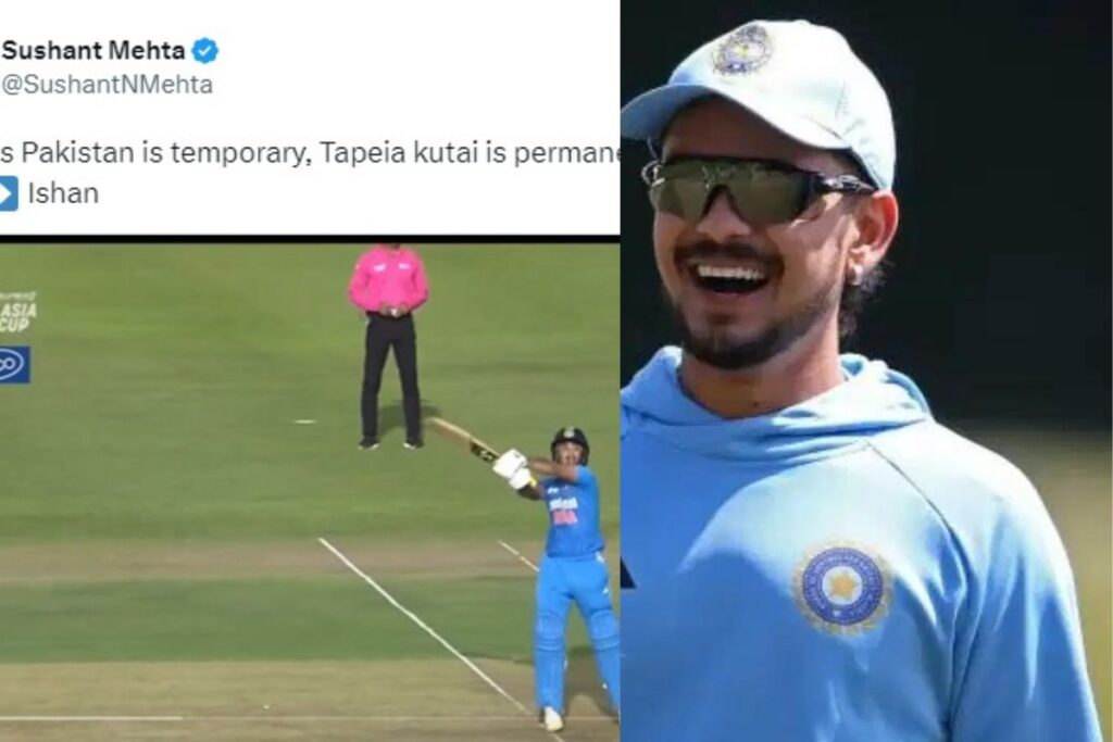 भारत और पाकिस्तान के बीच खेले गए मैच में शानदार अर्धशतक लगाने वाले विस्फोटक बल्लेबाज ईशान किशन के द्वारा लगाया गया एक छक्का सोशल मीडिया पर खूब वायरल हो रहा है। आपको बता दें कि ईशान किशन ने यह छक्का भारत-पाकिस्तान मैच के दौरान जड़ा था। अब इस छक्के को देखकर फैंस का भी खूब मनोरंजन हो रहा है। आपको बता दें कि कैंडी के पाल्लेकेले स्टेडियम में खेले गए भारत-पाकिस्तान मैच में ईशान के बल्ले से कुल 82 रन निकले थें। आपको बता दें कि ईशान किशन ने इस दौरान 81 गेंदों में कुल 82 रनों की पारी खेली थी।सुशांत मेहता नामक व्यक्ति ने ट्विटर पर ईशान के इस छक्के को पोस्ट किया है।