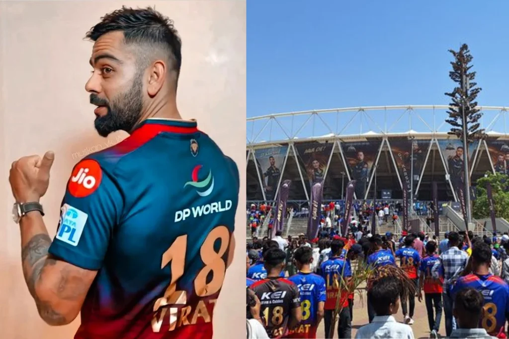 IPL 2024, GT vs RCB: आज Narendra Modi Stadium में IPL 2024 का 45वां मैच GT और RCB के बीच खेला जा रहा है। इसी बीच यहां कुछ खास देखने को मिला। आपको बता दें, मैच के पहले स्टेडियम के बाहर जबरदस्त भिड़ देखने को मिली। इस भारी भिड़ में ज्यादा से ज्यादा सपोर्टर सिर्फ किंग कोहली के दिखे, जिसमें सबने जर्सी नंबर 18 पहनी थी।