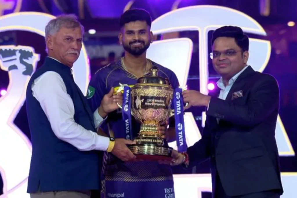 कोलकाता नाइट राइडर्स ने हैदराबाद को 8 विकेट से आसानी से हराकर इतिहास रच दिया। जिसके बाद टीम का ऐसा सेलिब्रेशन लाजमी था। KKR के कप्तान श्रेयस अय्यर को IPL 2024 की ट्रॉफी BCCI अध्यक्ष रोजर बिन्नी और BCCI सचिव जय शाह के हाथों मिली। जिसके बाद अय्यर और उनकी टीम ने ट्रॉफी के साथ लियोनस मेस्सी के अंदाज में सेलिब्रेट करना शुरु कर दिया।