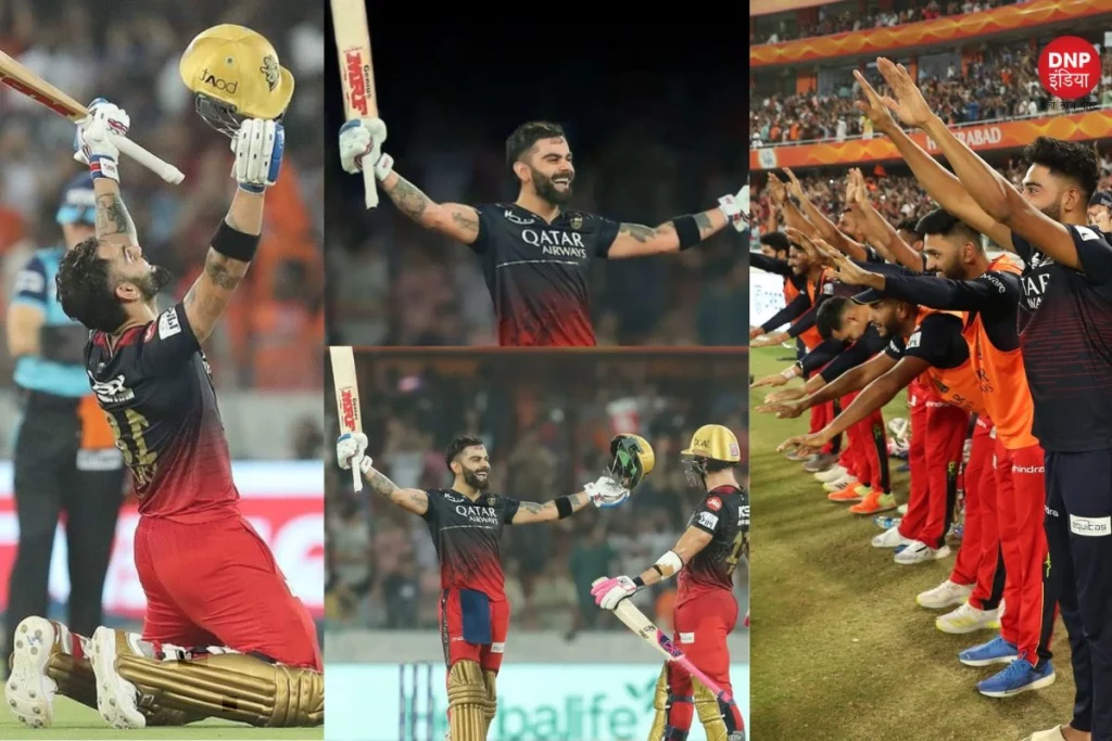 IPL Viral Video: आईपीएल का 65वां मुकाबला सनराइजर्स हैदराबाद बनाम रॉयल चैलेजर्स बेंगलोर के बीच खेला गया। यह मुकाबला हैदराबाद के गढ़ राजीव गांधी इंटरनेशनल स्टेडियम में खेला गया। इस मैच कप्तान फाफ डू प्लेसिस ने टॉस जीतकर हैदराबाद को पहले बल्लेबाजी करने का मौका दिया था। पहल बल्लेबाजी करते हुए हैदराबाद ने आरसीबी को 187 रनों का लक्ष्य रखा था। लक्ष्य का पीछा करते हुए विराट कोहली ने ऑरेंज आर्मी के गेंदबाजो के परखच्चे उड़ा कर रख दिए। उनकी शतकीय पारी का एक वीडियो वायरल हो रहा है। वायरल वीडियो में कोहली शतक जड़ने के बाद बेहद शानदार अंदाज में जश्न मनाते हुए कैमरे में कैद हुए। जिसका अंदाजा आप वायरल वीडियो को देख कर लगा सकते है।