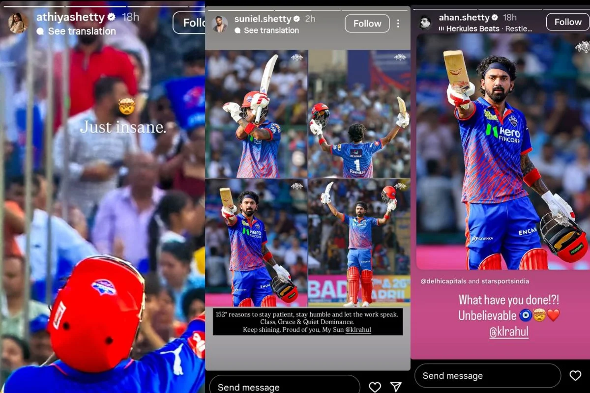 दरअसल केएल राहुल ने 152 रन की नाबाद पारी खेल कर सोशल मीडिया पर हीरो बन चुके हैं जहां पंजाब किंग्स के खिलाफ उन्होंने अपने धाकड़ परफॉर्मेंस से लोगों को हैरान कर दिया। इस सब के बीच जिस चीज ने लोगों का ध्यान खींचा वह है अथिया शेट्टी, सुनील शेट्टी और अहान शेट्टी के रिएक्शंस। जहां अपने पति के लिए पोस्ट करते हुए अथिया शेट्टी ने लिखा, “सिर्फ क्रेज़ी।” वहीं अपने पति की परफॉर्मेंस से वह अचंभित नजर आई।