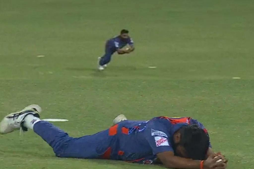 दरअसल, पारी का 18 ओवर यश ठाकुर कर रहे थे, 18 ओवर की दूसरी गेंद यश ठाकुर ने पॉइंट की दिशा में की जिसे राहुल त्रिपाठी ने पॉइंट की ओर कट किया और लेकिन पॉइंट पर खड़े अमित मिश्रा ने डाइव लगाकर राहुल त्रिपाठी का शानदार कैच पकड़ लिया और राहुल त्रिपाठी 41 गेंदों पर 35 रन बनाकर आउट हो गए। अमित मिश्रा के शानदार कैच का वीडियो सोशल मीडिया पर जमकर वायरल हो रहा है।