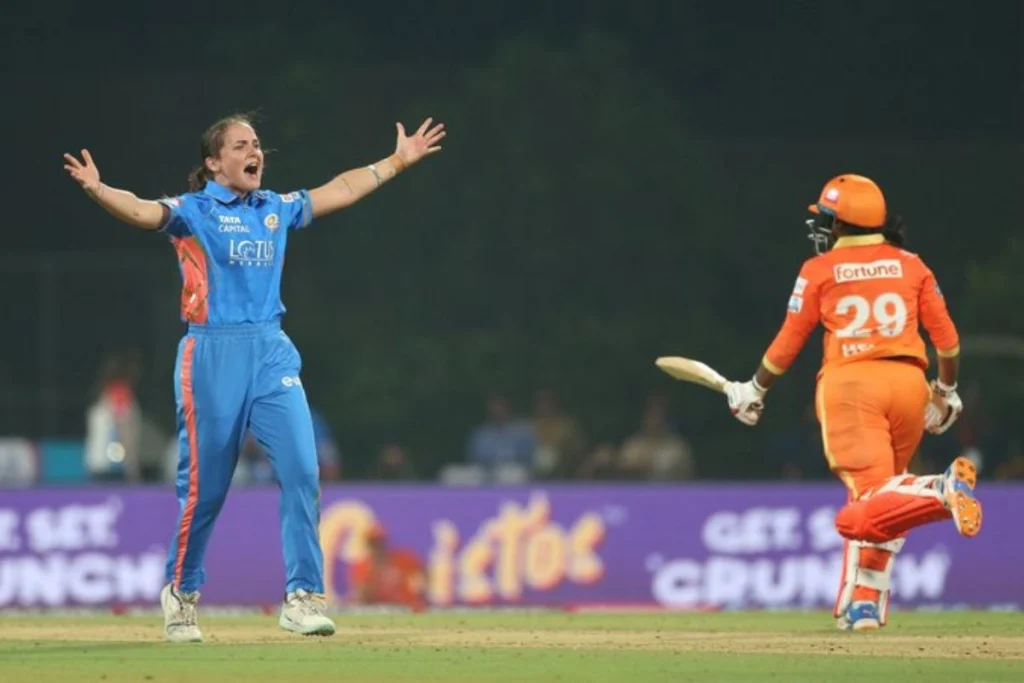 WPL के पहले मैच में गुजरात के बल्लेबाजों का बहुत ही खराब प्रदर्शन दिखा और पूरी टीम मात्र 45 रनों पर ही सिमट गई। मुंबई महिला टीम के गेंदबाजों ने शानदार गेंदबाजी की और गुजरात के बल्लेबाजों को क्रीज पर टिकने ही नहीं दिया। मुंबई टीम की तरफ से दो गेंदबाजों ने 2-2 विकेट झटके वहीं सायका इशाक ने 4 विकेट झटका और अपनी टीम को मैच में जीताया।