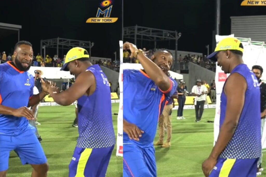 MLC 2023: वेस्टइंडीज के विस्फोटक बल्लेबाज कीरोन पोलार्ड और क्रिकेटर ब्रैवो को भला कौन नहीं जानता है। आपको बता दें कि कीरोन पोलार्ड इस समय मेजर लीग क्रिकेट के कार्यक्रम में व्यस्त हैं। अब जाकर इन दिनों कीरोन पोलार्ड और ब्रावो की एक वीडियो सोशल मीडिया पर जमकर वायरल हो रही है जिसमें दोनों मस्ती भरे अंदाज में एक दूसरे को कुछ इशारा करते नजर आ रहें हैं।