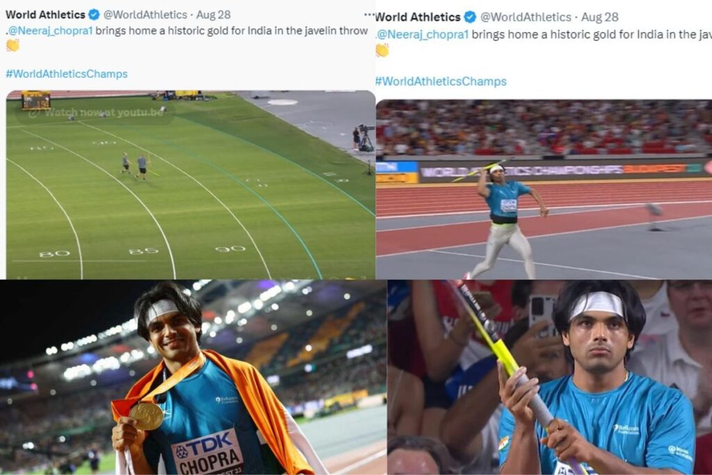 Neeraj Chopra Gold Medal: भारत के स्टार जेवलिन थ्रोअर नीरज चोपड़ा ने हाल में ही सम्पन्न हुए वर्ल्ड एथेलेटिक्स चैम्पियनशिप में गोल्ड मेडल जीतकर पूरे देश को ख़ुशी से झूमने पर मजबूर कर दिया है। अब ऐसे में नीरज चोपड़ा की एक वीडियो खूब वायरल हो रही है जिसमें वह भाला फेंकते नजर आ रहे है। अपने दूसरे प्रयास में फेंके गए इसी जेवलिन की मदद से उन्होंने वर्ल्ड चैम्पियनशिप में गोल्ड मेडल जीता है।