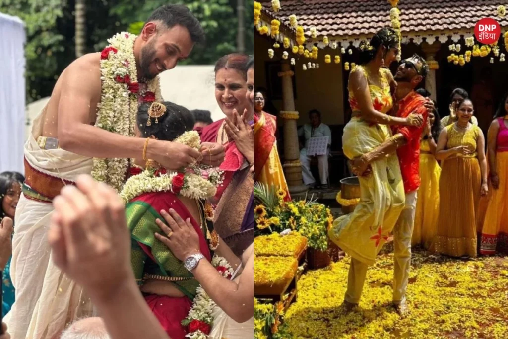 Prasidh Krishna: भारतीय टीम इन दिनों इंग्लैंड में ऑस्ट्रेलिया के साथ विश्व टेस्ट चैम्पियनशिप का फाइनल मुकाबला खेल रही है। वहीं भारतीय क्रिकेटर अपनी शादियों में व्यस्थ है। कुछ दिन पहले रूतुराज गायकवाड अपनी पार्टनर उत्कर्षा के साथ शादी के बंधन में बंधे थे। वहीं आज यानि गुरूवार को टीम इंडिया के तेज गेंदबाज प्रसिद्ध कृष्णा भी शादी के बंधन में बंध चुके है। उनकी शादी की कुछ फोटो सोशल मीडिया पर वायरल हो रही है।