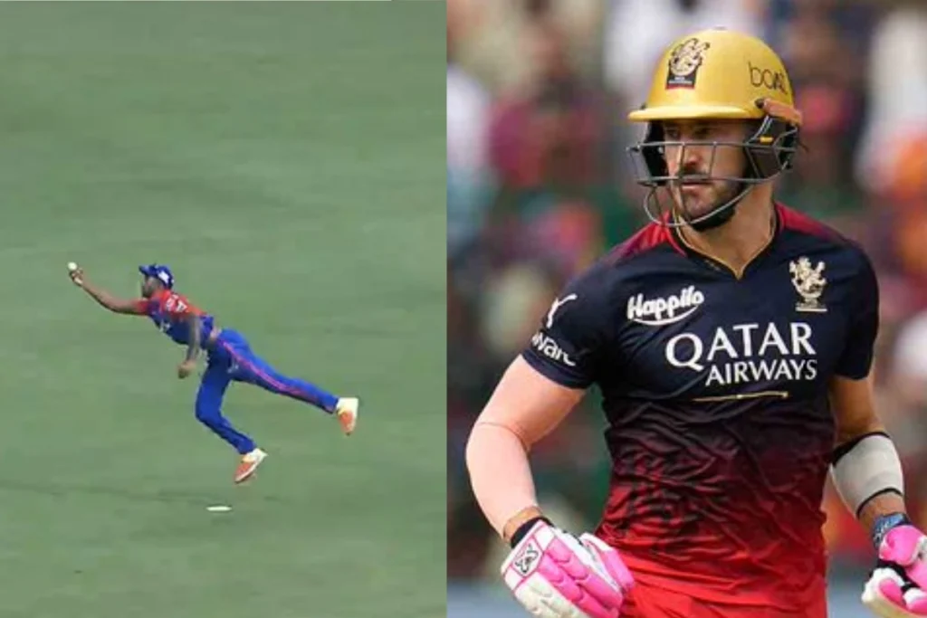 RCB VS DC IPL 2023: आईपीएल 2023 का 20वां मुकाबला रॉयल चैंलेजर्स बैंगलौर और दिल्ली कैपिटल्स के बीच खेला जा रहा है। इस सीजन कमाल की बल्लेबाजी करने वाले आरसीबी के कप्तान फाफ डु प्लेसिस सस्ते में आउट हो गए। इस मैच में फाफ डु प्लेसिस 16 गेदों पर आउट हुए। लेकिन जिस तरह फाफ डु प्लेसिस जिस तरह आउट हुए वह काफी खास रहा। फाफ डु प्लेसिस का अमल हाकिम खान ने शानदार कैच पकड़कर आउट किया, जिसका वीडियो सोशल मीडिया पर जमकर वायरल हो रहा है।