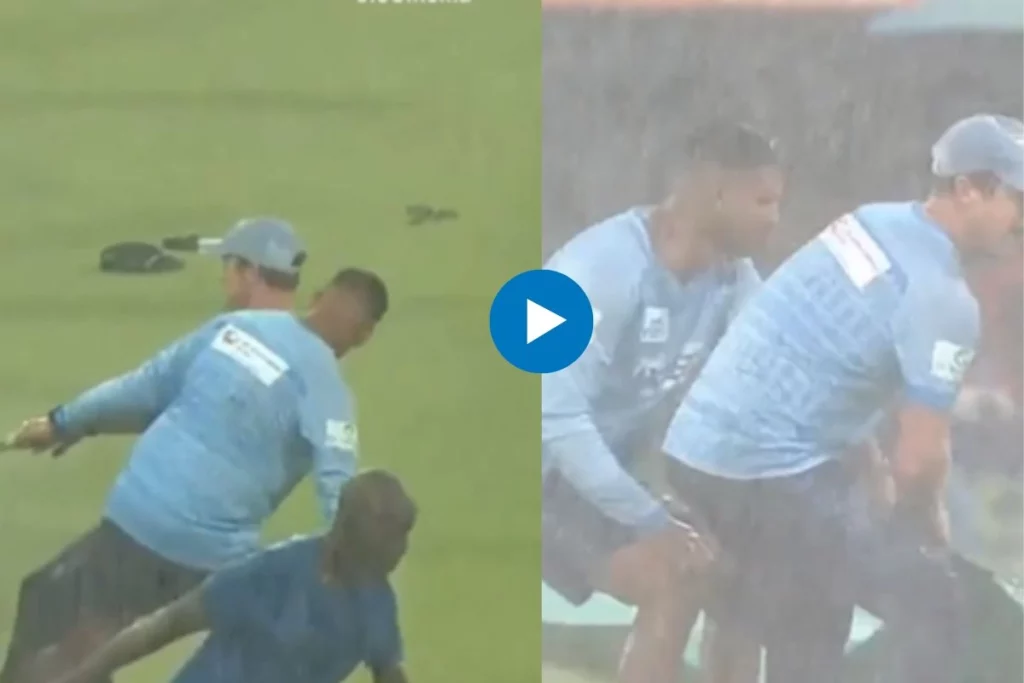 SA20 2023: साउथ अफ्रीका में खेले जा रहे SA20 2023 लीग में हमें खिलाड़ियों के शॉट, गेंद और कैच के वीडियो ने दिल जीता है। लेकिन अब सपोर्ट स्टाफ ने भी कुछ ऐसा कर दिया जिसे देख हर किसी का दिल खुश हो गया। वैसे तो क्रिकेट एक जेंटल मैन का क्रिकेट कहा जाता है और इसे साबित करने के लिए कुछ खिलाड़ी हमेशा आगे रहते हैं। इस बीच लीग के 24वें मैच में डरबन सुपर जायंट्स बनाम सनराइजर्स ईस्टर्न केप के बीच मैच बारिश के भेंट चढ़ गया। लेकिन सोशल मीडिया पर एक वायरल वीडियो में डरबन सुपर किंग्स टीम के सपोर्ट स्टाफ में से जोंटी रोड्स (Jonty Rhodes) और मोर्ने मार्केल (Morne Morke) ने बारिश के दौरान दिल जीत लेने वाला काम किया है।