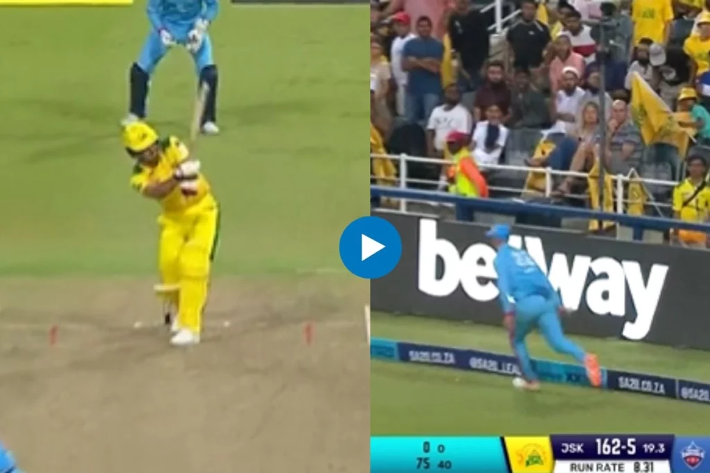 साउथ अफ्रीका टी20 लीग में कल खेले गए मुकाबले में जॉबबर्ग सुपर किंग्स बनाम प्रिटोरिया कैपिटल के बीच मैच खेला गया। इस दौरान मैच के पहली पारी में एक अद्भुत नजारा देखने को मिला जब जॉबबर्ग सुपर किंग्स के बल्लेबाज गेराल्ड कोएट्ज़ी ने प्रिटोरिया कैपिटल के तेज गेंदबाज ईथन बॉश की एक फुल लेंथ गेंद पर एक शॉट खेला जो हवा में उड़ते हुए छक्के के लिए जा रही थी और बाउंड्री लाइन पर फील्डिंग कर रहे विल जैक्स ने बेहतरीन दौड़ लगाते हुए बाउंड्री लाइन पर एक हाथ से गजब का कैच लपक लिया।
