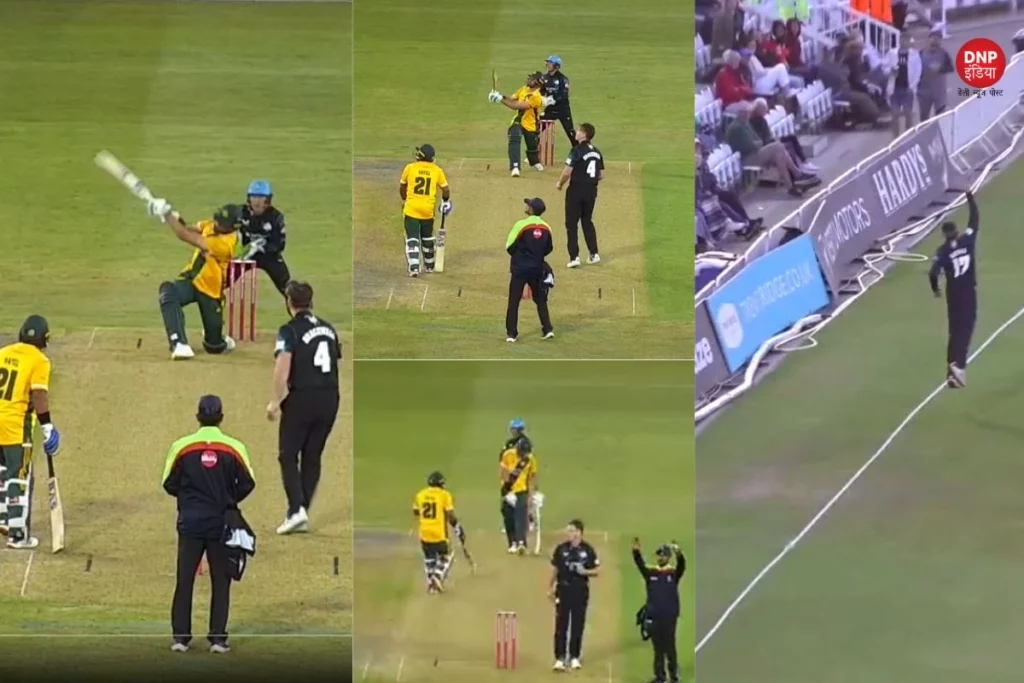 Shaheen Afridi: इंग्लैंड की घरेंलू लीग टी20 ब्लास्ट इन दिनों काफी ज्यादा चर्चाओ में बनी हुई है। इस लीग में अब तक एक से बढ़कर एक मुकाबले खेले जा चुके है। इसी बीच बीते शुक्रवार को वास्टेशायर बनाम नोटिंगमशायर के बीच कांटे का मुकाबला खेला गया। इस मुकाबले में नोटिंगमशायर की टीम में पाकिस्तान के तेज गेंदबाज शाहीन अफरीदी भी खेल रहे थे। उन्होंने आरसीबी के हरफनमौला खिलाड़ी माइकल ब्रेसवेल के एक ओवर में 4 छक्के जड़ दिए। जिसका एक वीडियोे वायरल हो रहा है।