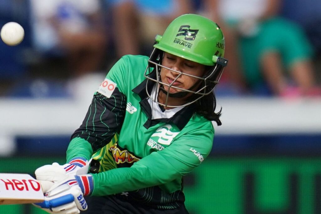 भारतीय महिला क्रिकेटर स्मृति मंधाना इन दिनों अपने बेहतरीन फॉर्म में चल रही हैं। आपको बता दें कि स्मृति अभी इंग्लैंड में द हंड्रेड लीग में खेल रही हैं जहां उन्होंने अब सदर्न ब्रेव की टीम की तरफ से खेलते हुए नया कीर्तिमान बना दिया है। स्मृति मंधाना ने कल यानी शनिवार, 4 अगस्त को सदर्न ब्रेव और वेल्श फायर के बीच खेले गए मुकाबले में 70 रन की ताबड़तोड़ पारी खेल एक नया रिकॉर्ड बना दिया। आपको बता दें कि मंधाना ने इस दौरान 42 गेंदों का सामना करते हुए 11 चौकों की मदद से 70 रन ठोक डालें। इसके साथ ही उन्होंने द हंड्रेड लीग में अपना 500 रन भी पूरा कर लिया। स्मृति डी हंड्रेड लीग में 500 रन बनाने वाली पहली महिला खिलाड़ी बन गयी है।इस उपलब्धि को हासिल करने के बाद द हंड्रेड ने अपने ट्विटर हैंडल पर स्मृति की पारी की सराहना की है।
