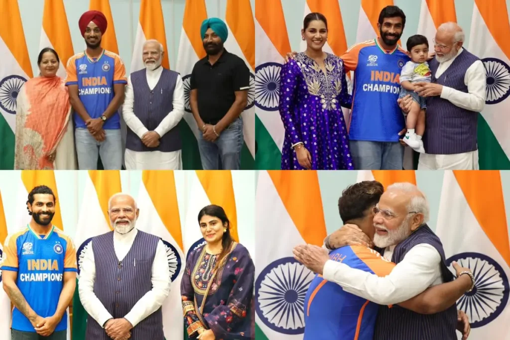 Team India Meet PM Modi: भारतीय क्रिकेट टीम के लिए आज यानी 4 जुलाई का दिन बेहद खास है। आज के दिन ही भारतीय टीम (Team India) बाराबाडोस से निकल कर राजधानी दिल्ली पहुंची है। इसके बाद टीम के सभी खिलाड़ियों नें 7-लोक कल्याण मार्ग पर स्थित पीएम आवास पहुंच कर प्रधानमंत्री नरेन्द्र मोदी से (PM Modi) मुलाकात की है।