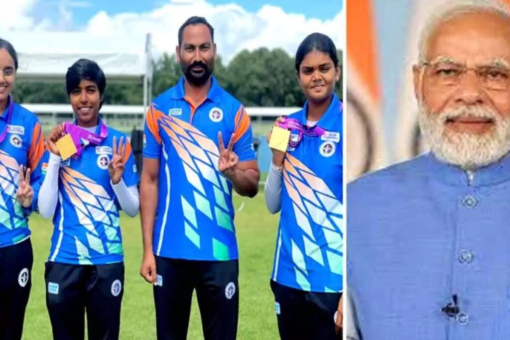 World Archery Championship 2023: भारत के प्रधानमंत्री नरेंद्र मोदी ने हाल में ही विश्व तीरंदाजी चैंपियनशिप में भारत के लिए गोल्ड जीतने वाली महिला कंपाउंड टीम का तहेदिल शुक्रिया अदा किया है। आपको बता दें कि जर्मनी की राजधानी बर्लिन में जारी विश्व तीरंदाजी चैंपियनशिप की महिला कंपाउंड वर्ग में भारतीय खिलाड़ियों ने कमाल का प्रदर्शन करते हुए गोल्ड जीता था।