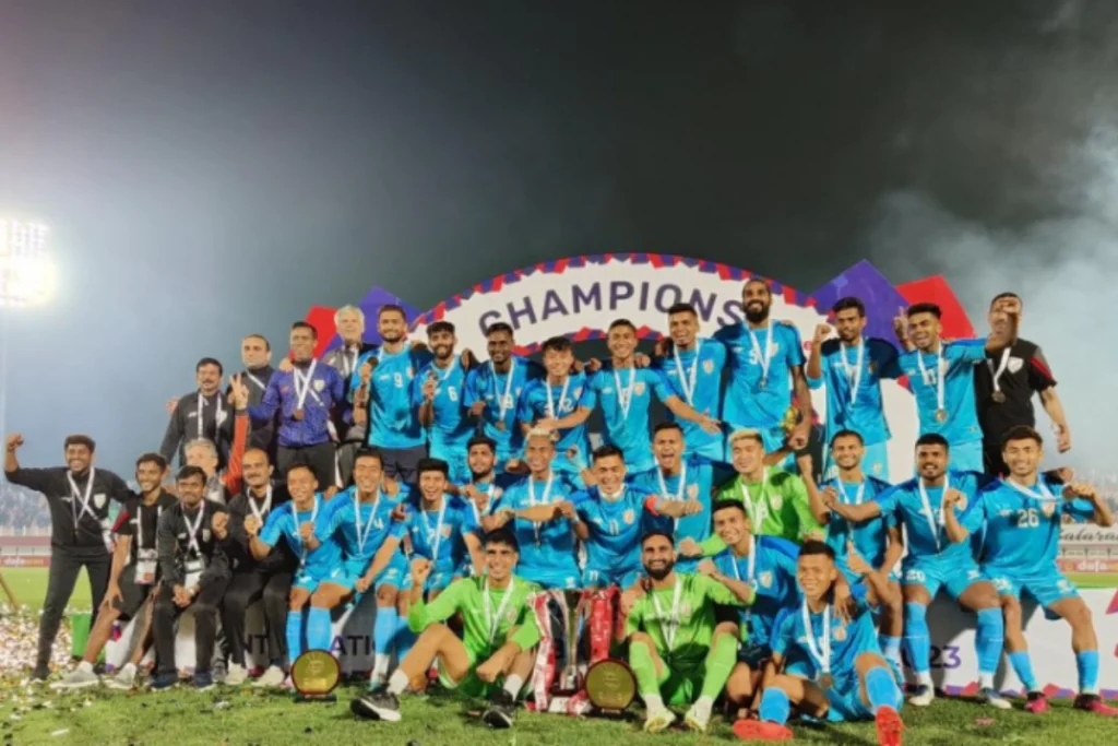 किर्गिज़ गणराज्य के खिलाफ, शुरुआती गोल अप्रत्याशित क्वार्टर से आया। सेंटर-बैक संदेश झिंगन ने 34वें मिनट में भारत के लिए पहला गोल दागा। ब्रैंडन फर्नांडीस ने फ्री-किक से प्रतिद्वंद्वी गोलमाउथ के सामने गेंद को शैली में रखा, झिंगन ने पैंथर की तरह उस पर झपट्टा मारा। किर्गिज़ गणराज्य के गोलकीपर तोकोताएव एर्ज़ान को यह आभास था कि डिफेंडर संदेश झिंगन हेडर के लिए जाएंगे। लेकिन उनका अंदाज़ा काफी गलत था क्योंकि झिंगन ने गेंद के लैंड होने का इंतजार किया और फिर कर्व शॉट मार दिया जिससे गेंद लहराते हुए नेट में चली गई। गोलकीपर के पास गेंद को रोकने का कोई मौका नहीं था। स्पॉट किक का पुरस्कार निश्चित रूप से घरेलू प्रशंसकों के लिए दोहरी खुशी की बात थी। यह न केवल भारत के लिए दूसरा गोल था, बल्कि भारतीय कप्तान सुनील छेत्री के करियर का 85वां अंतरराष्ट्रीय स्ट्राइक भी था। जैसे ही भारतीय फुटबॉल के दिग्गज ने किक लेने के लिए कदम बढ़ाया और फिर उसे नेट के कोने पर मार दिया, दर्शकों की खुशी का कोई ठिकाना नहीं रहा।