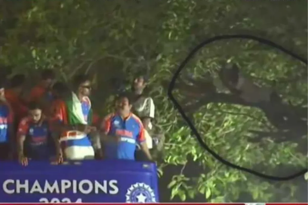 Viral Video: टी20 वर्ल्ड कप 2024 जीतने के बाद भारतीय क्रिकेट टीम का पूरे मुम्बई सहित देश ने भव्य स्वागत किया है. वानखेड़े स्टेडियम में सभी भारतीय क्रिकेट खिलाड़ियों का सम्मान चल रहा है. स्टेडियम पहुंचने से पहले क्रिकेट टीम की एक विजय रैली मुम्बई में निकाली गई, जिसमें क्रिकेट प्रेमियों की भयंकर भीड़ देखने को मिली . इस दौरान हर फैन अपने कैमरे में खिलाड़ियों के साथ इस ऐतिहासिक पल को कैद करना चाहता था. इसके लिए लोगों ने वो हर संभव प्रयास किया, जिससे वो क्रिकेटर्स के करीब पहुंच सकें. इस दौरान विजय रैली और खिलाड़ियों को कैमरे में सबसे नजदीक से कैप्चर करने के लिए एक क्रिकेट प्रेमी अपनी जान की बाजी लगाते हुए पेड़ पर चढ़ गया. इस फैन के दीवानेपन को देखकर खिलाड़ी भी काफी चौंक गए.