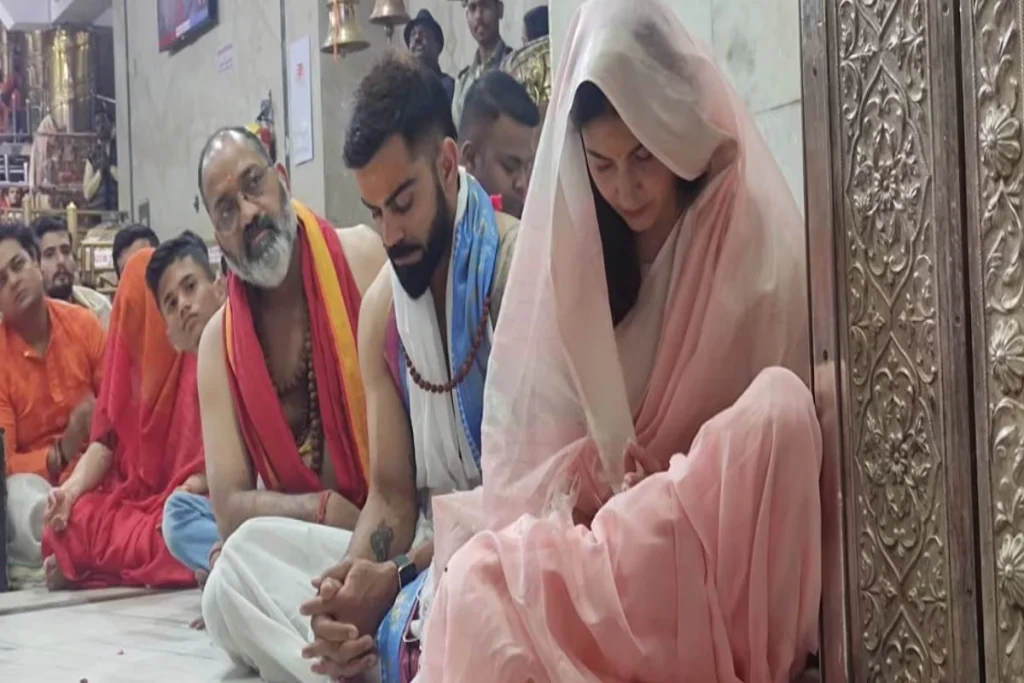 Virat Kohli-Anushka Sharma: भारतीय टीम के पूर्व कप्तान विराट कोहली और एक्ट्रेस अनुष्का शर्मा इन दिनों लगातार देश की अलग -अलग मंदिरों में दर्शन के लिए जा रहे हैं। किंग कोहली अभी कुछ दिनों पहले परिवार सहित बरसाना गए हुए थे। वहां से दर्शन करके लौटने के बाद बल्लेबाज विराट को उत्तराखंड के नीम करौली बाबा के दर्शन करते हुए देखा गया। नीम करौली बाबा के दर्शन की तस्वीरें भी सोशल मीडिया पर खूब वायरल हुई थी।