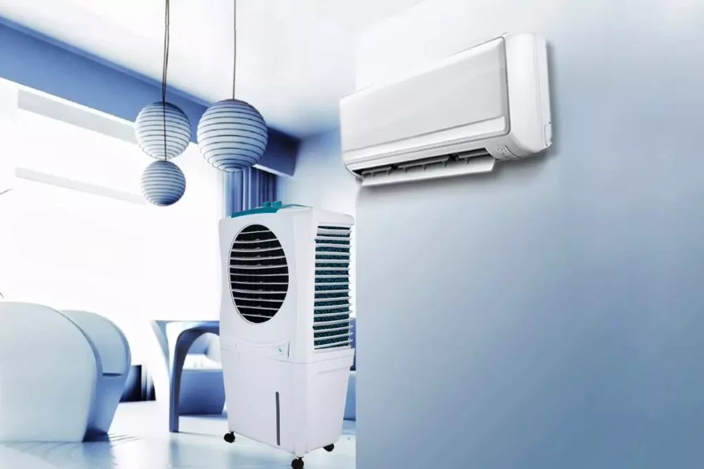 एयर कूलर आपके लिए अच्छा ऑप्शन हो सकता है। एयर कूलर में हवा को ठंडा करने के लिए पानी का इस्तेमाल किया जाता है। एयर कूलर फिल्टर या पैड की मदद से कमरे की नमी को खींचता है और भाप से हवा को ठंडा करता है। इसके कूलर में दिए गए पंखे की मदद से हवा कमरे में वापस आती है। कूलर खरीदने में भी कम खर्चा होता है और इसे चलाने में भी ज्यादा पैसे खर्च नहीं करने पड़ते क्योंकि यह बिजली की खपत कम करता है।
