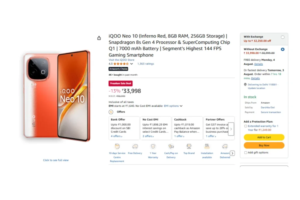 Amazon Great Freedom Festival में iQOO Neo 10 पर 13% की छूट
