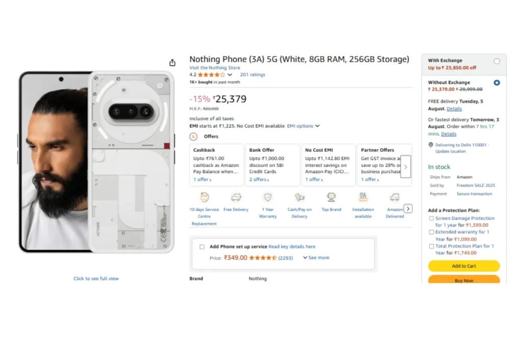 अमेजन ग्रेट फ्रीडम फेस्टिवल में Nothing Phone 3A 5G पर जबरा डिस्काउंट