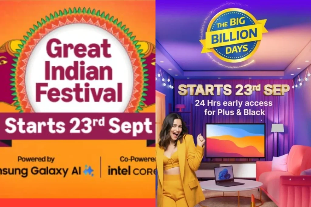 शॉपिंग वेबसाइट अमेजन ने बताया है कि अमेजन ग्रेट इंडियन फेस्टिवल सेल का आगाज 23 सितंबर 2025 से होगा। जबकि फ्लिपकार्ट बिग बिलियन डेज सेल की शुरुआत भी 23 सितंबर से ही होगी। इसके साथ ही अमेजन ग्रेट इंडियन फेस्टिवल और फ्लिपकार्ट बिग बिलियन डेज सेल में अगर आपके पास सब्सक्रिप्शन या सदस्यता है, तो आप सेल का 24 घंटे पहले लाभ उठा सकते हैं।