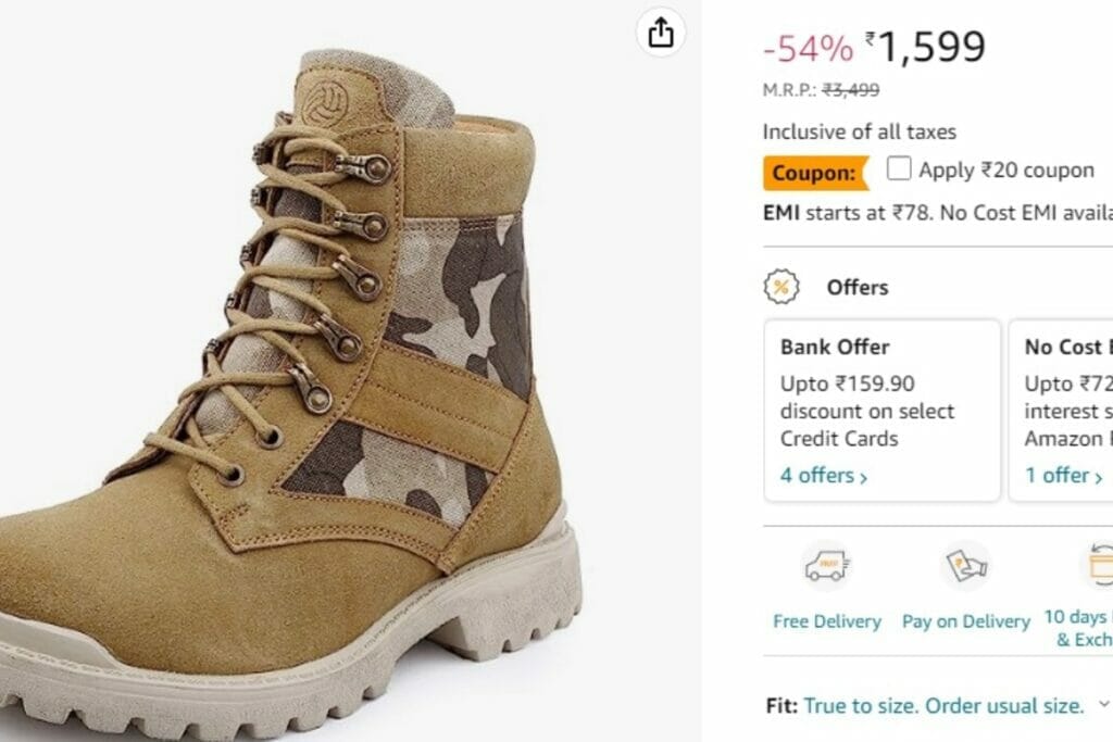 इन खास तरह के जूतों की कीमत 3499 रुपए है लेकिन आप ऑफर के तहत 1599 रुपए में अपना बना सकते हैं। इतना ही नहीं आप 78 रुपए की EMI भी बनवा सकते हैं लेकिन इसके लिए आपको सभी नियमों और शर्तों को पूरा करना होगा और ब्याज देना पड़ेगा। अमेजन पर ये जूते Bacca Bucci Men’s Desert Boot के नाम से बिक रहे हैं, जिनका तला रबर का बना हुआ है। ये अंदर से काफी स्लिम और सुविधा जनक हैं। ये जूते काफी आरामदाय हैं। अगर आप मानसून का मजा बिना जूते खराब किए लेना चाहते हैं तो इन खास जूतों का खरीद सकते हैं। आराम के सात ये काफी स्टाइलिश भी हैं। अमेजन पर ये ऑफर सीमित समय के लिए है।