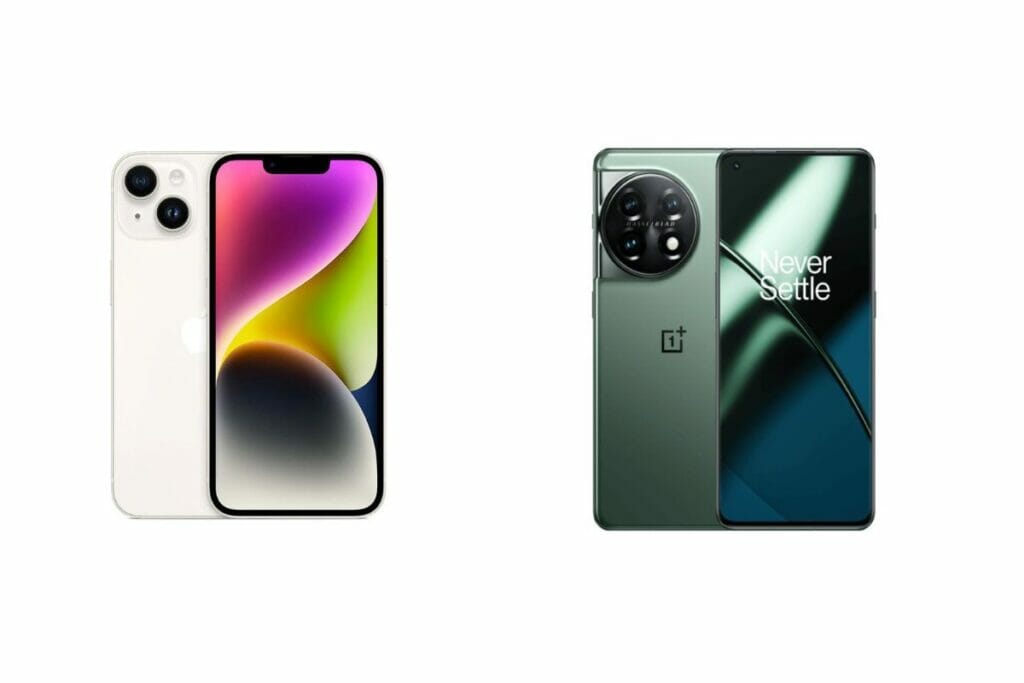 Apple iPhone 14 vs OnePlus 11: स्मार्टफोन बाजार में भले ही लगातार नए-नए डिवाइस एंट्री ले रहे हैं। मगर कुछ स्मार्टफोन के फीचर्स काफी शानदार होते हैं। इनमें एप्पल कंपनी के आईफोन का नाम तो आता ही है। साथ ही वनप्लस कंपनी का भी नाम शामिल है। अगर आप एक प्रीमियम फ्लैगशिप फोन तलाश रहे हैं तो आप इन मोबाइल्स पर गौर कर सकते हैं। हम एप्पल आईफोन 14 और वनप्लस 11 (Apple IPhone 14 vs OnePlus 11) की बात कर रहे हैं। जानें इनमें क्या अंतर है।