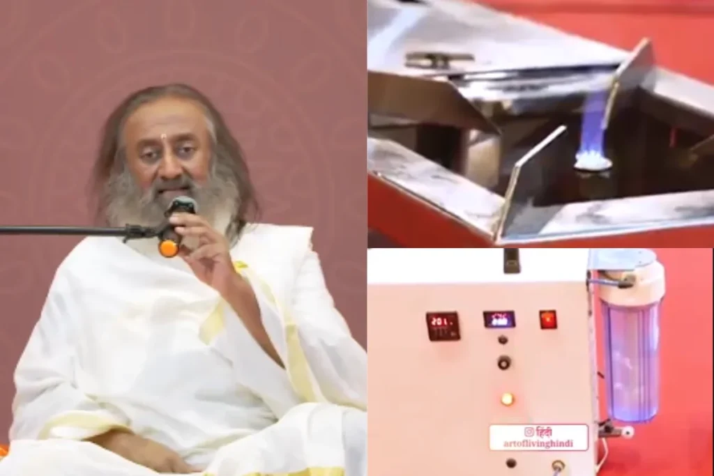 ऑक्सीजन हवा में छोड़ेगा और हाइड्रोडन से चूल्हा जलेगा। वीडियो में आगे महेश नाम का व्यक्ति बोलता है कि LPG गैस लाते हैं, उसमें मिथेन होता है, मिथेन को जलाने पर रोटी के ऊपर ब्लैक हो जाता है, जिससे कैंसर होने का कारण बन सकता है। वीडियो में आगे बताया गया ‘यह मशीन कोई कार्बन उत्सर्जन नहीं होता है और इससे कार्बन डाई ऑक्साइड नहीं बनता है। अगर यह पूरे इंडिया में चला जाएगा, तो इंडिया की इकोनॉमी बूस्ट होगी। इस मशीन का उत्पादन आर्ट ऑफ लिविंग के साथ मिलकर किया जाएगा।’