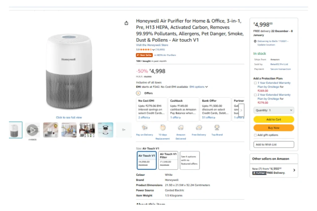 Delhi Pollution: इस एयर प्यूरीफायर पर 55% की छूट