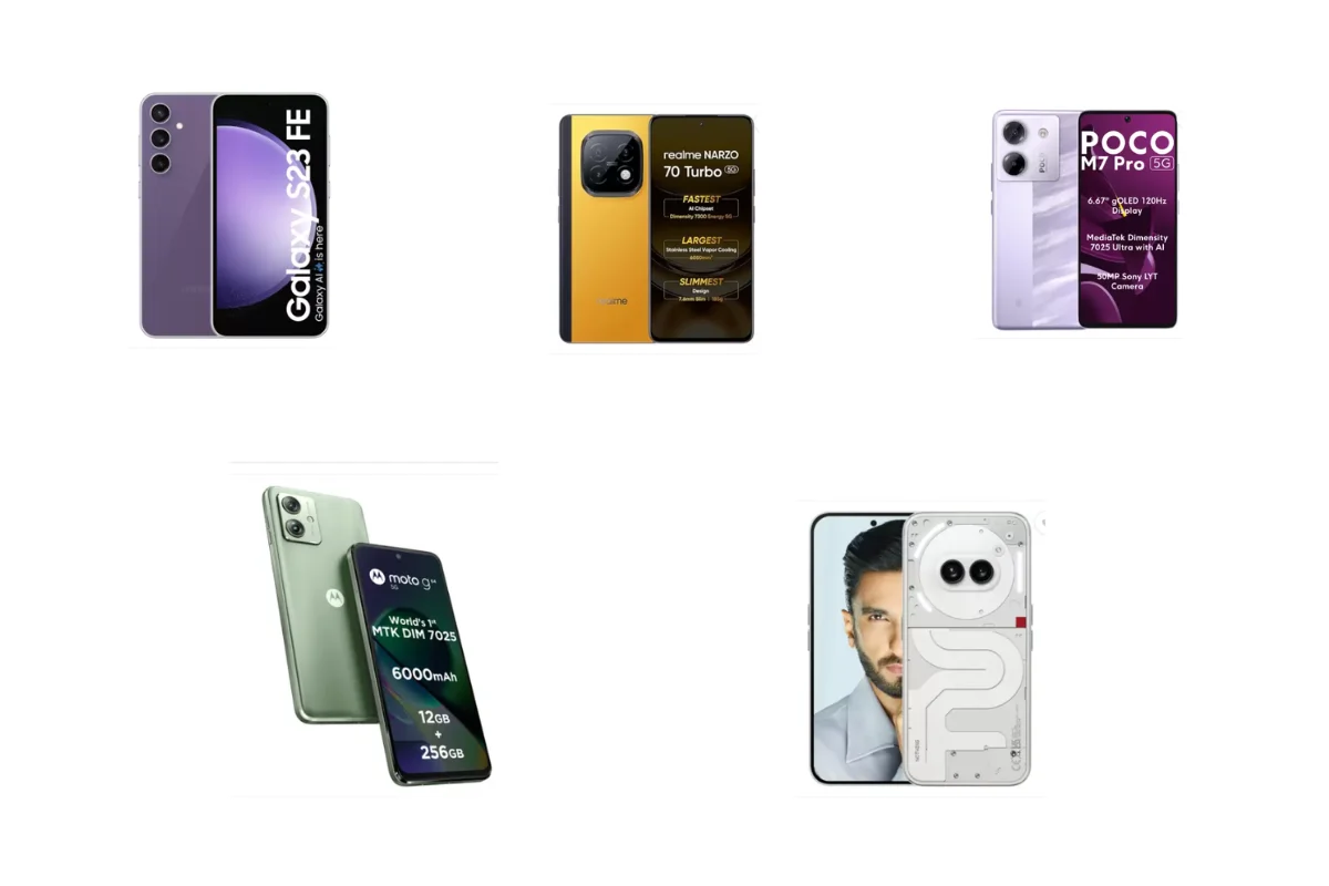 Flipkart Big Bachat Days Sale: अगर आप अभी नहीं जानते हैं, तो आपको बता दें कि फ्लिपकार्ट पर नई सेल का आगाज हो चुका है। हॉट समर सेविंग्स के जरिए यूजर्स अच्छी-खासी बचत कर सकते हैं। फ्लिपकार्ट बिग बचत डेज सेल में एक से बढ़कर एक स्मार्टफोन MRP से कम रेट पर खरीदे जा सकते हैं। इस सेल में हम 5 ऐसे फोन छांटकर लाए हैं, जो आपके लिए बढ़िया साबित हो सकते हैं। इसमें SAMSUNG Galaxy S23 FE, Realme Narzo 70 Turbo समेत कई धांसू मॉडल शामिल हैं।