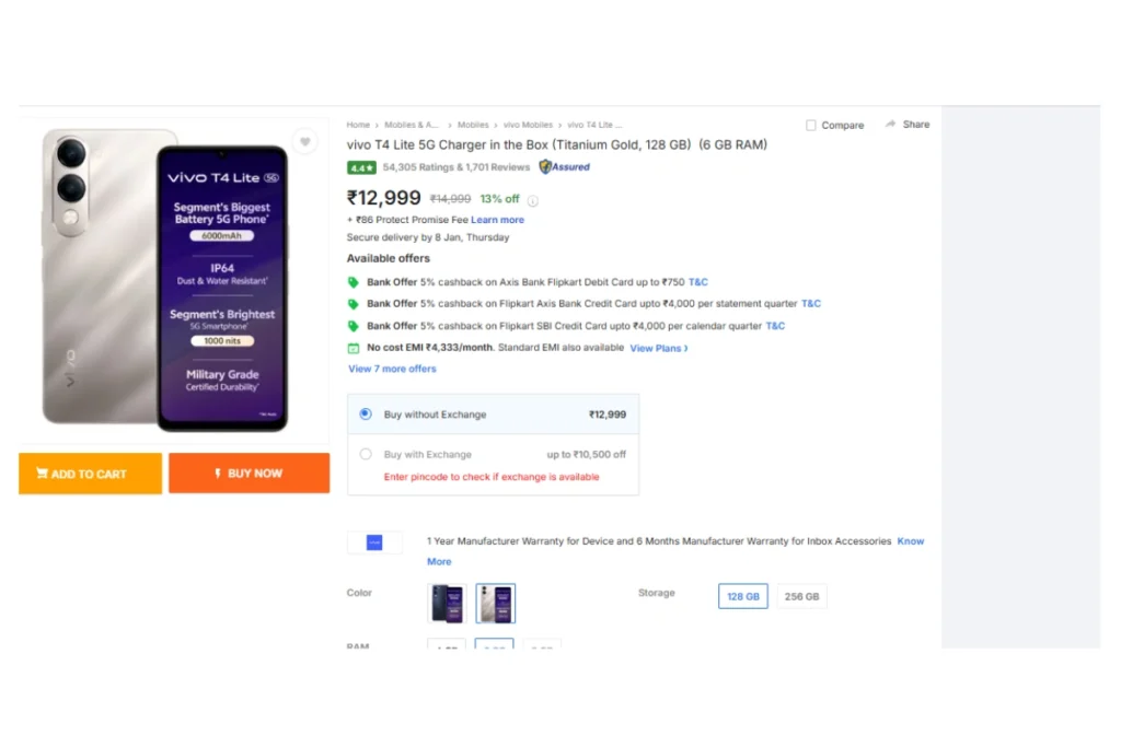 Flipkart Big Bachat Days Sale में वीवो टी4 लाइट 5जी फोन पर धांसू छूट