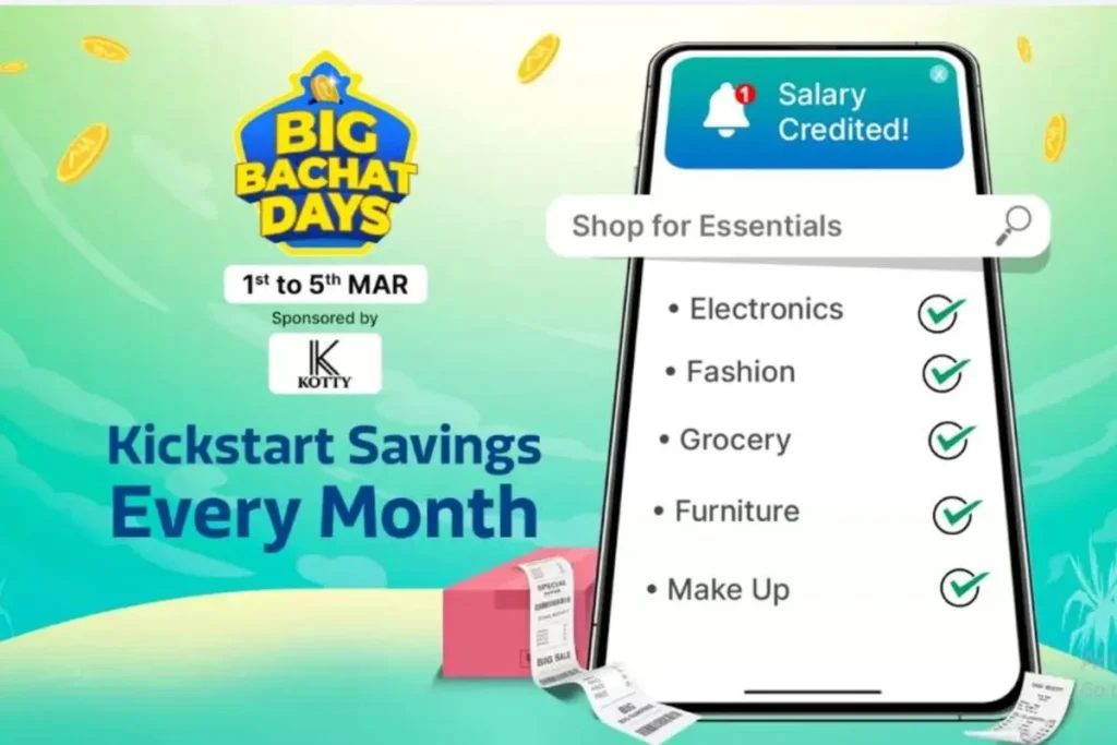इस सेल में कुछ चुनिंदा बैंक कार्ड्स पर भी डिस्काउंट मिल सकता है। जिसका लाभ यूजर्स उठा सकते हैं। Big Bachat Days Sale 1 मार्च से लाइव कर दी जाएगी। जहां पर अपनी जरुरतों का सामान सस्ते में खरीद सकते हैं। लेकिन ध्यान रहे ये ऑफर सीमित समय के लिए है। जिसे कंपनी के द्वारा कभी भी बदला जा सकता है। फैशन और ग्रूमिंग प्रोडक्ट के साथ इलेक्ट्रोनिक सामान खरीदने के लिए ये एक अच्छी सेल है। जिसका लाभ सस्ते में उठाया जा सकता है।