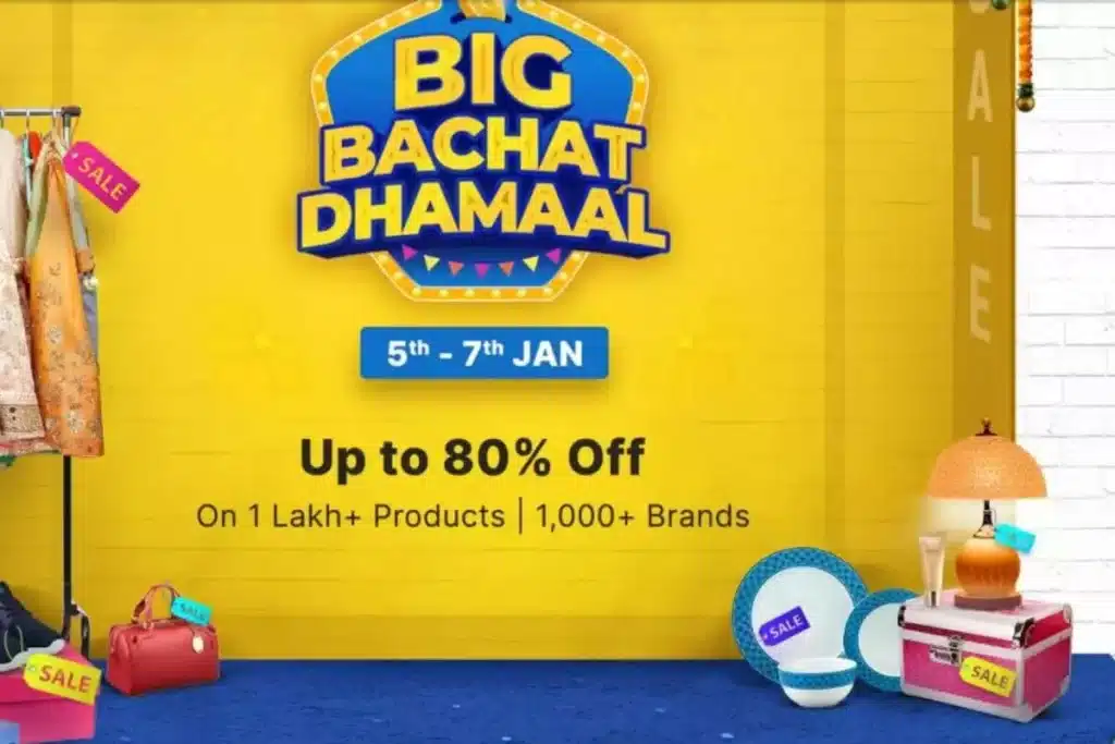 Flipkart Big Bachat Dhamaal Sale : ऑन लाइन शॉपिंग कंपनी फ्लिपकार्ट पर साल की सबसे पहली और सबसे बड़ी सेल Flipkart Big Bachat Dhamaal Sale 5 जनवरी से लेकर 7 जनवरी तक चलेगी। जिसमें 80 फीसदी तक की छूट पर इलेक्ट्रोनिक सामान के साथ बहुत कुछ खास मिलने वाला है। इस सेल में 1 लाख प्रोडक्ट और 1000 ब्रांड शामिल हैं। इस सेल में आप स्मार्टफोन से लेकर टीवी सहित तमाम तरह से सामन सस्ते में घर ला सकते हैं।