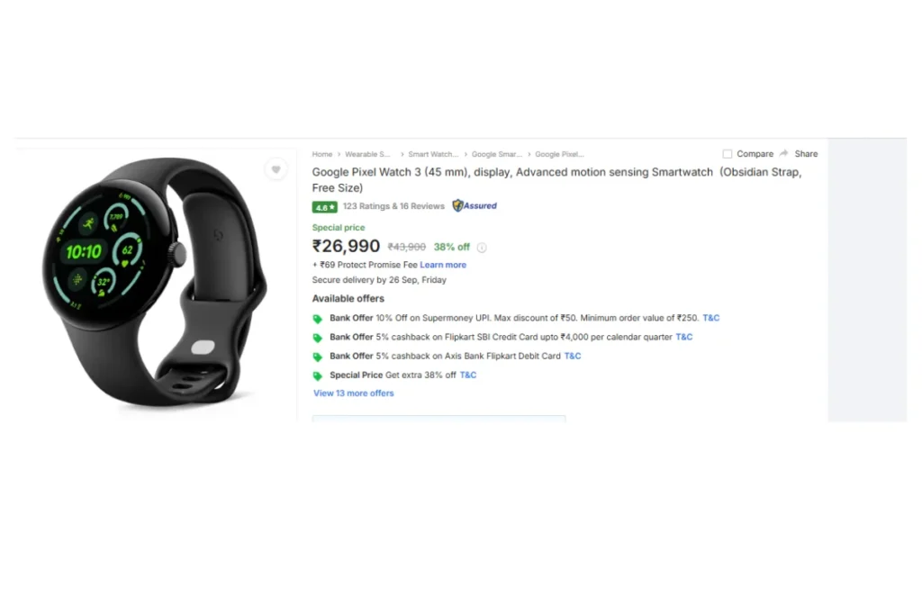 फ्लिपकार्ट बिग बिलियन डेज सेल से कम प्राइस पर खरीदें गूगल पिक्सल वॉच 3