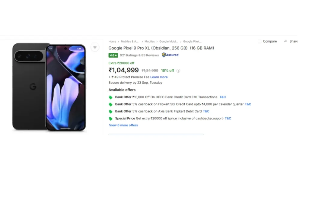 फ्लिपकार्ट बिग बिलियन डेज सेल में 16% कम हुआ गूगल पिक्सल 9 प्रो एक्सएल का प्राइस
