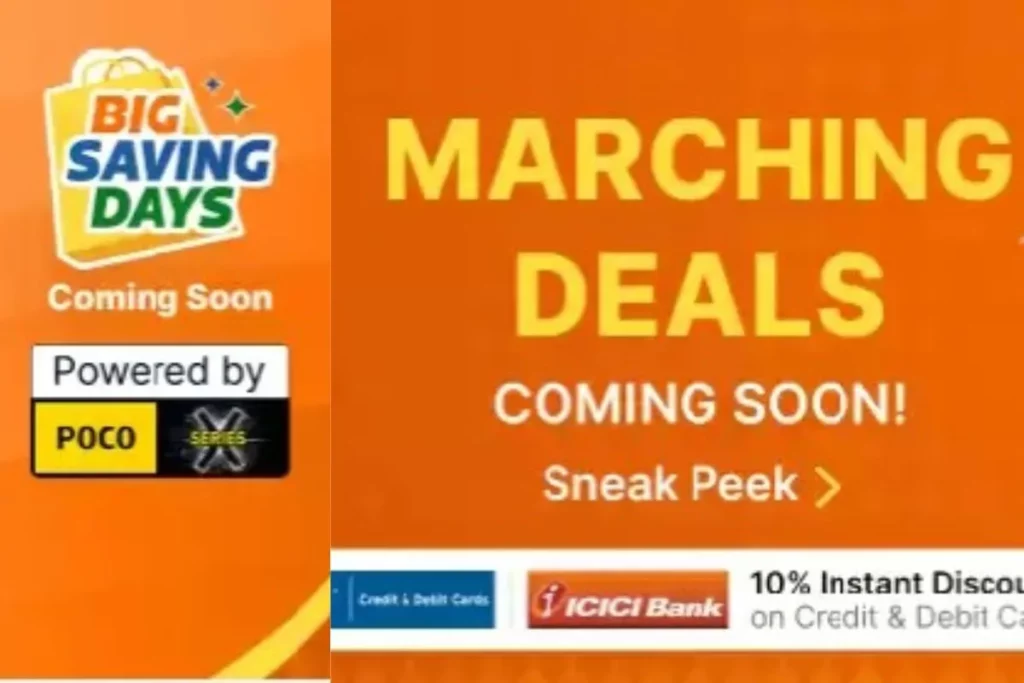 फ्लिपकार्ट पर Big Savings Days सेल कब से शुरु होगी, इस बारे में किसी भी तरह की कोई जानकारी नहीं दी गई है। Flipkart की वेबसाइट पर दी गई जानकारी के मुताबिक, यहां हर डील पर बचत होगी। वहीं, फ्लिपकार्ट एक्सिस बैंक क्रेडिट कार्ड के जरिए 5 फीसदी का कैशबैक मिलेगा। साथ ही फ्लिपकार्ट पे लेटर जैसी सुविधा का लाभ भी उठाया जा सकता है। इसमें इंस्टेंट क्रेडिट और 1000 रुपये तक के गिफ्ट कार्ड मिलेंगे। इसके साथ ही सिटी बैंक के क्रेडिट कार्ड और डेबिट कार्ड और ICICI बैंक के कार्ड्स के जरिए 10 फीसदी की इंस्टेंट छूट ली जा सकती है।
