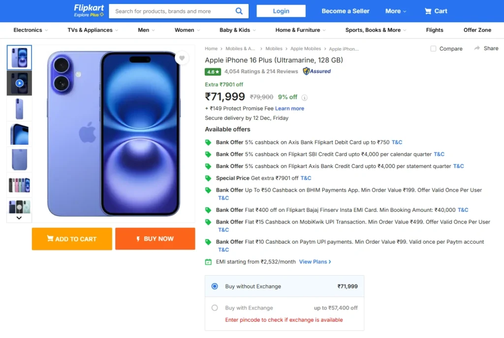 Flipkart Buy Buy 2025 Sale में गिरे Apple iPhone 16 Plus के दाम
