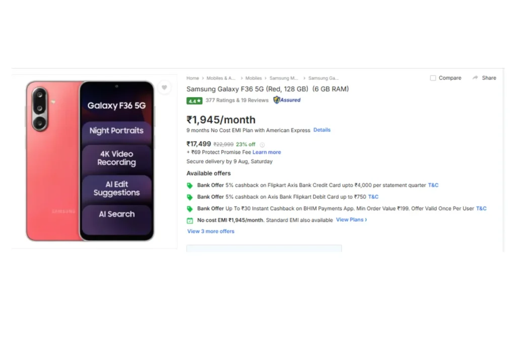फ्लिपकार्ट फ्रीडम सेल 2025 में Samsung Galaxy F36 5G पर बंपर छूट