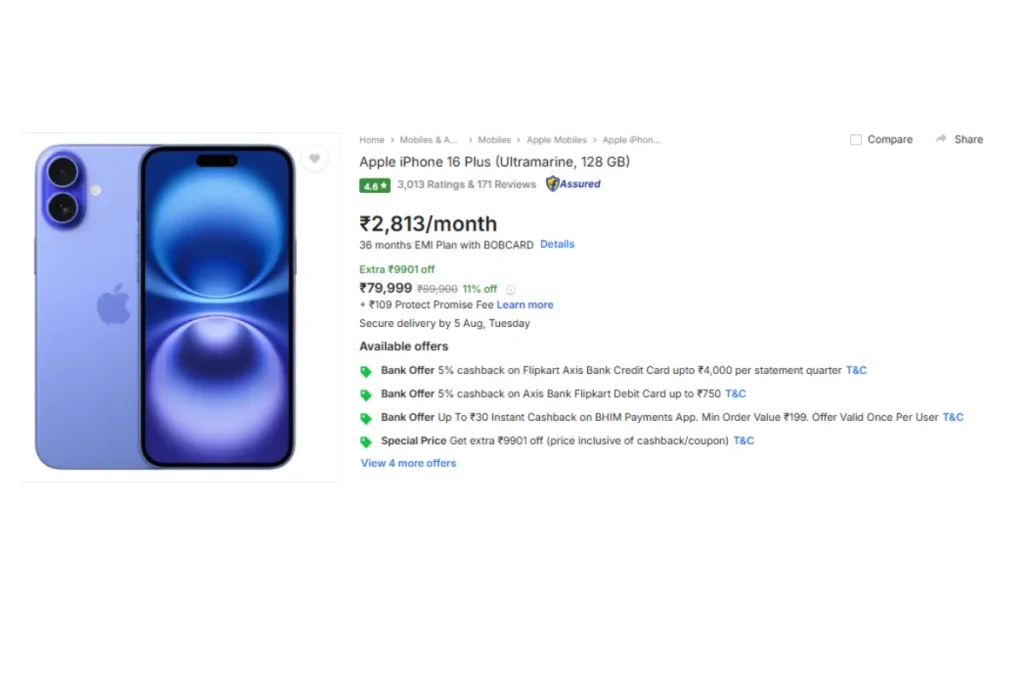 Flipkart Freedom Sale 2025 में iPhone 16 Plus पर 11% का डिस्काउंट